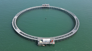 2018年建成北方首座周长400m远海大型管桩生态围栏(蓝钻一号),2020年建成国内首座周长160米大型智能化休闲围栏(蓝钻二号),形成20万m3的远海养殖水体,配套活鱼运输车、大型活鱼运输船、大型气动投喂装备、吸鱼泵、活鱼分级筛、水下机器人、海洋环境观测网系统、气象监测系统、海上微波信息传输系统等装备,实现生态养鱼、休闲渔业融合发展。打造循环水、深水网箱、大型围栏的陆海接力创新模式,实现陆海统筹。
