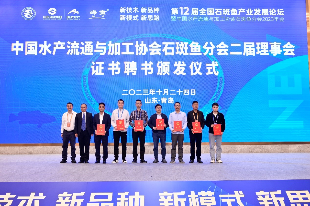 10月24日,由山东海洋明波水产有限公司、中国水产科学研究院黄海水产研究所、莱州市委组织部、莱州市海洋发展和渔业局联合承办的第12届全国石斑鱼产业发展论坛暨中国水产流通与加工协会石斑鱼分会2023年会在山东青岛隆重举办,中国工程院林浩然院士线上参会,中国工程院麦康森院士、包振民院士、陈松林院士亲临会议,四大院士共同参与,为石斑鱼产业高质量发展站台!